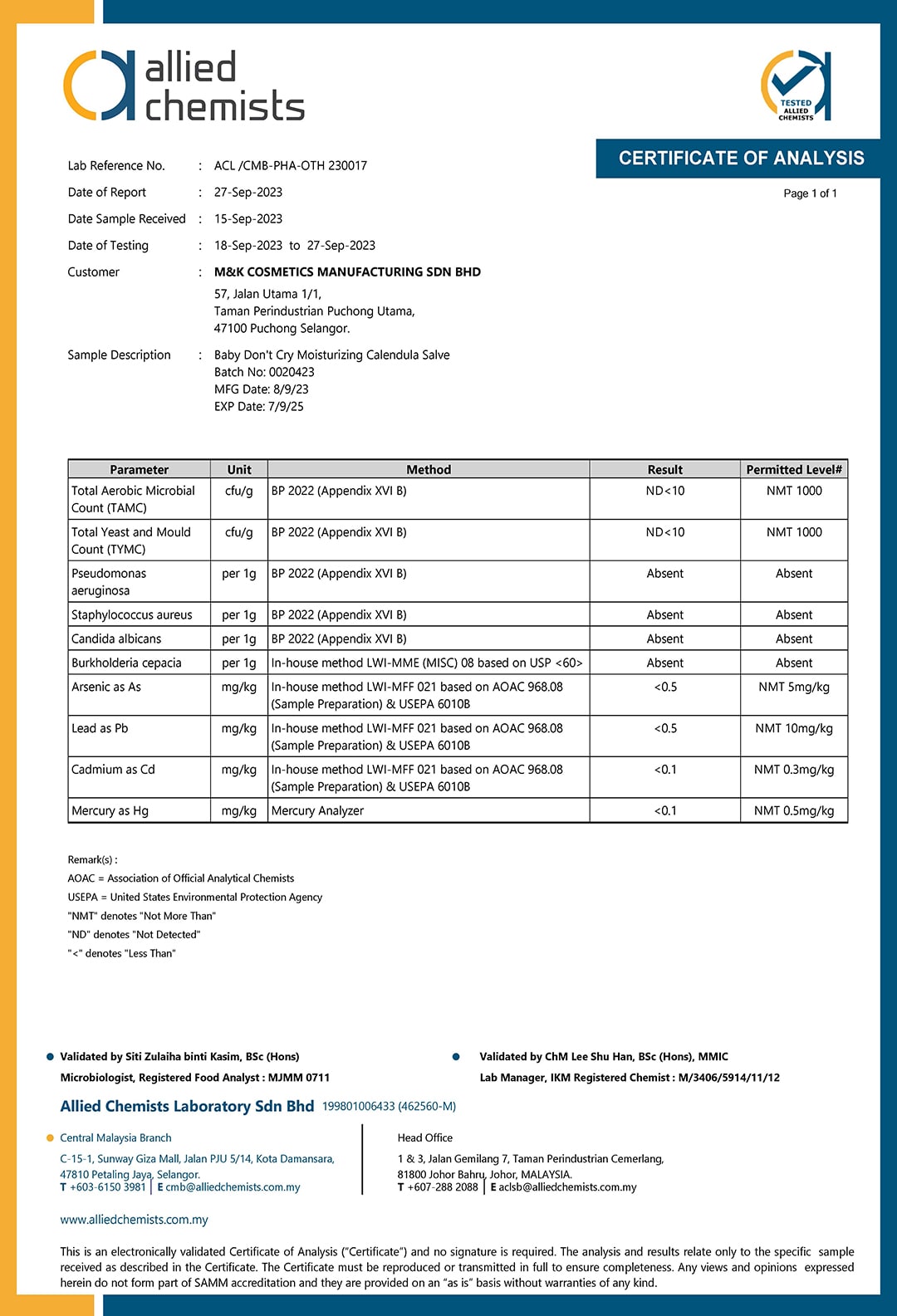 Krim Baby Don’t Cry sesuai digunakan untuk semua jenis peringkat umur, tidak kira bayi atau orang dewasa